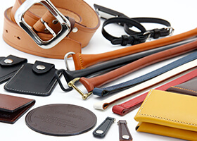 牛・馬・豚等の革を加工し、鞄のハンドルやパーツを自社内で制作しています。また、ベルトなど鞄以外の革製品も制作しています。